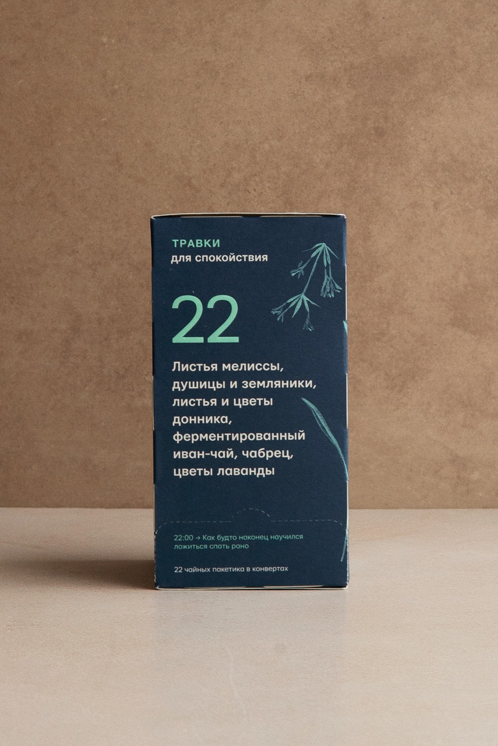 Состав: лист мелиссы, лист душицы, ферментированный иван-чай, лист земляники, чабрец, цвет лаванды, трава и цветы донника.