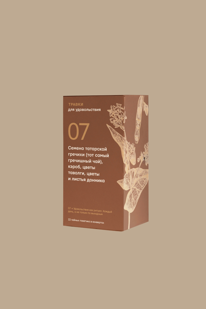 Состав: семена татарской гречихи (тот самый гречишный чай), кэроб, цветы таволги, цветы и листья донника.