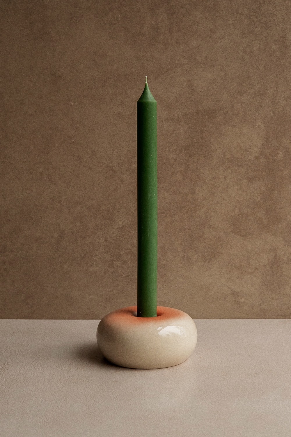 Оранжевый градиент и глянцевая глазурь, красиво поблёскивает на свету. Подсвечник для стандартной высокой свечи. Воск будет капать прямо на подсвечник, керамику просто очистить горячей водой. Форма подсвечника внутри полая.
